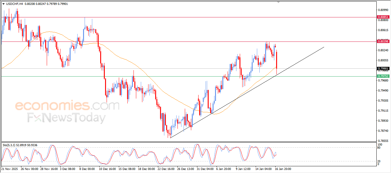 Prețul (USDCHF) a scăzut în ultima tranzacționare intraday, datorită stabilității rezistenței de 0,8040, încercând să caute un minim mai mare pentru a-l utiliza ca bază pentru a obține impulsul bullish necesar redresării, bazându-se pe suportul EMA50, însoțit de testarea liniei de trend corective bullish pe termen scurt, intensificând puterea acestei zone ca suport cheie ce va influența traiectoria viitoare, odată cu apariția unor semnale pozitive din partea indicatorilor de forță relativă, după atingerea nivelurilor de supravânzare.