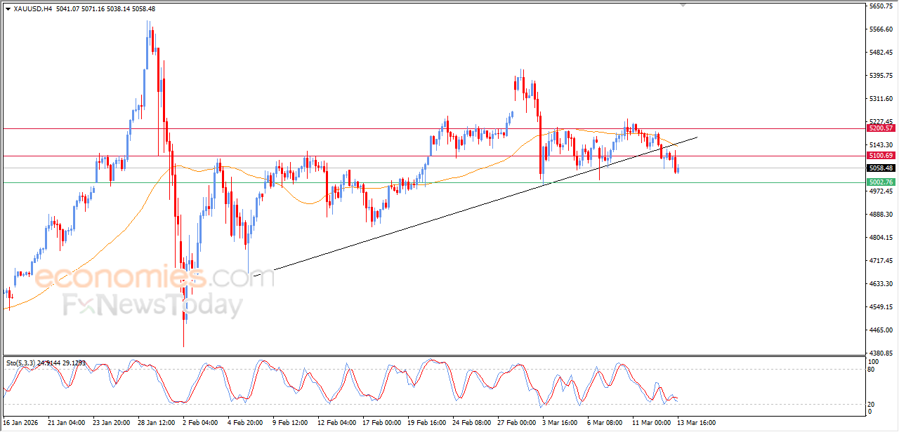 Prețul aurului se stabilizează în scădere în ultima tranzacționare intraday, din cauza depășirii unei linii de trend bullish minore pe termen scurt, cu continuarea presiunii negative din cauza tranzacționării sub EMA50, observându-se apariția semnalelor negative din partea indicatorilor de putere relativă, după depășirea unora dintre condițiile de supravânzare.