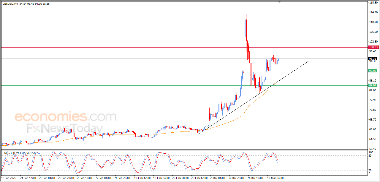 Prețul (țițeiului) a crescut în ultima sesiune de tranzacționare intraday, pe fondul continuării suportului dinamic reprezentat de tranzacționarea sa peste EMA50, consolidând stabilitatea și dominanța trendului principal bullish pe termen scurt. Creșterea prețului a venit după depășirea condițiilor de supracumpărare asupra indicatorilor de putere relativă, deschizând calea pentru extinderea câștigurilor sale pe termen scurt.