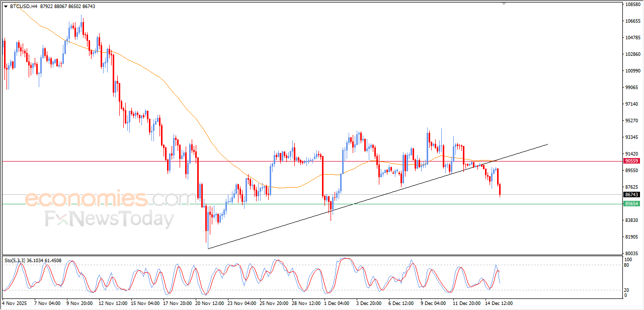 Prețul (BTCUSD) a scăzut în ultima tranzacționare la niveluri intraday, afectat de depășirea liniei de trend corectiv bullish pe termen scurt, cu continuarea presiunii negative datorate tranzacționării sub EMA50, pe lângă apariția semnalelor negative pe indicatorii de putere relativă, după atingerea nivelurilor de supracumpărare.