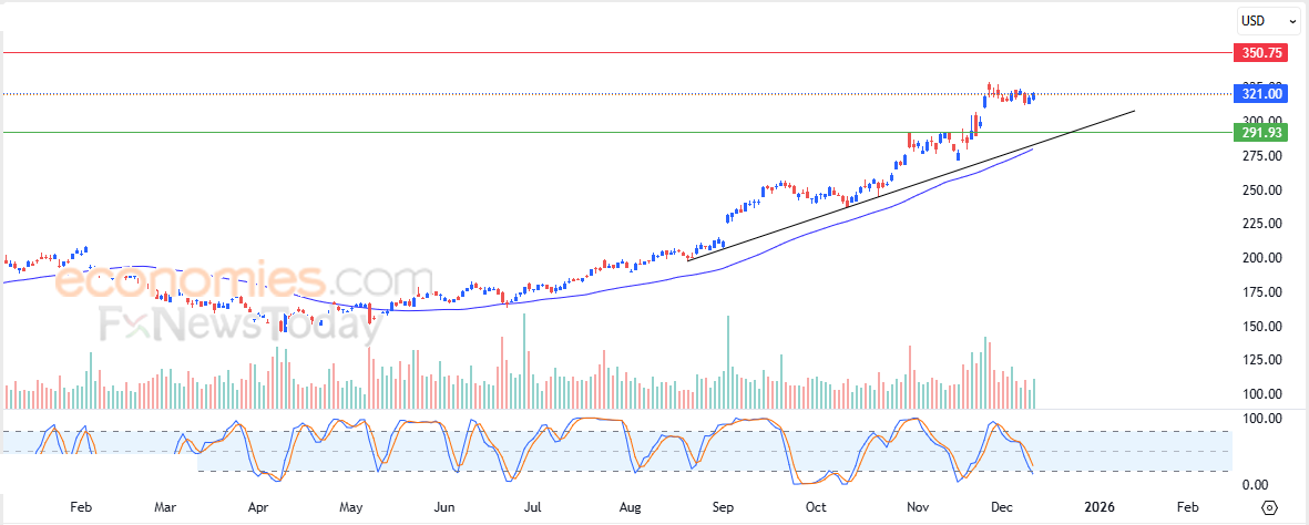 Prin urmare, ne așteptăm ca acțiunea să crească în următoarele tranzacții, atâta timp cât nivelul de suport de 291,95 USD rămâne intact, vizând nivelul de rezistență de **350,00 USD**.
